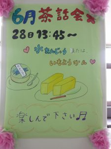 おやつを食べる前と後に山形県出身の作業療法士の実習生が作った小さい花笠で、